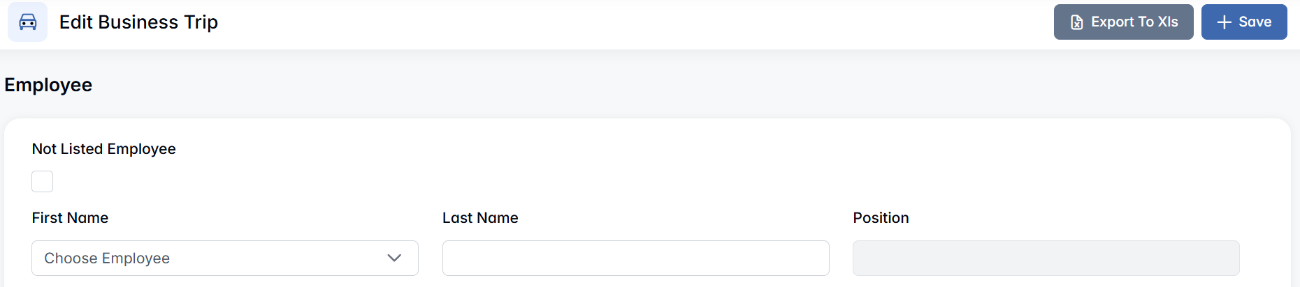 Check this box if the employee is not in the internal employee list — this allows free-text input. - First Name / Last Name / Position