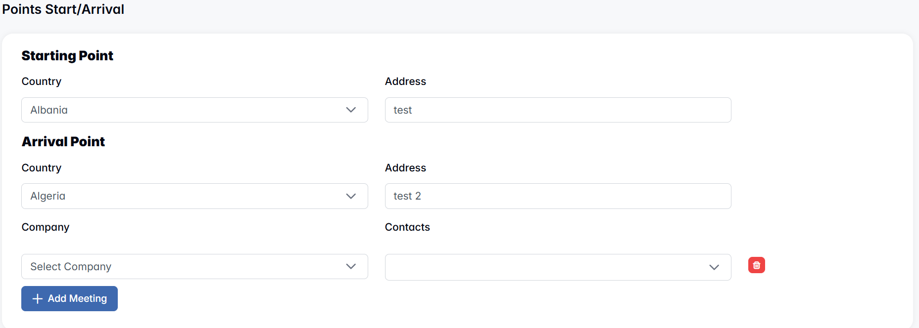 You can also click + Add Meeting if there’s a planned meeting with some company at the arrival point.