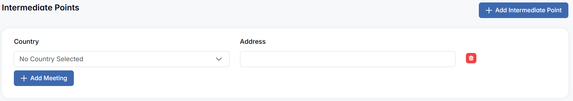 If the trip includes stops along the way (e.g., a visit to another office), click + Add Intermediate Point to enter each additional location. Click + Add Meeting if there’s a planned meeting with some company at the intermediate point.