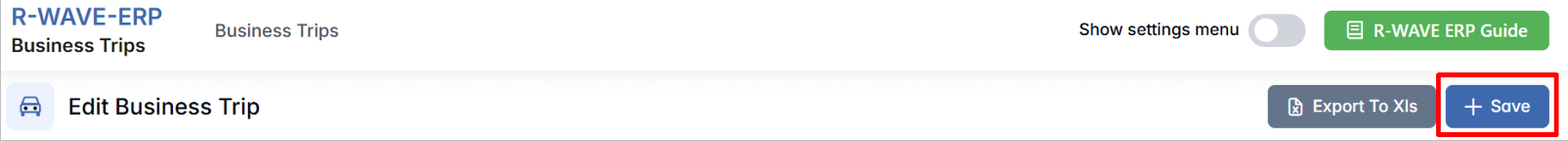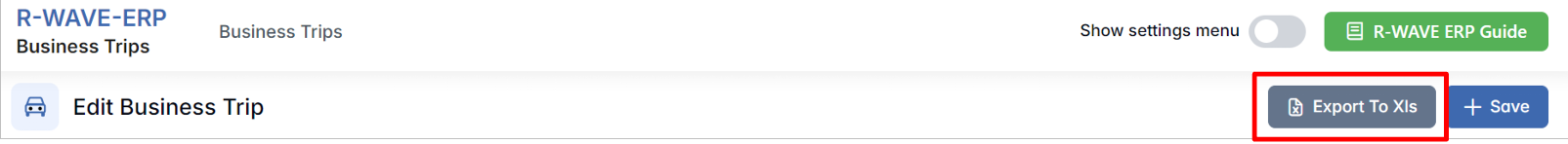 Clicking this will generate and download an Excel file containing all the key data from the business trip. This export is especially useful for reporting, archiving, or sharing trip details with accounting or management.