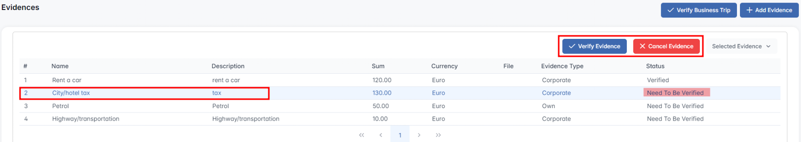 - Verify Business Trip - Finalizes the entire trip verification once all necessary checks are completed.