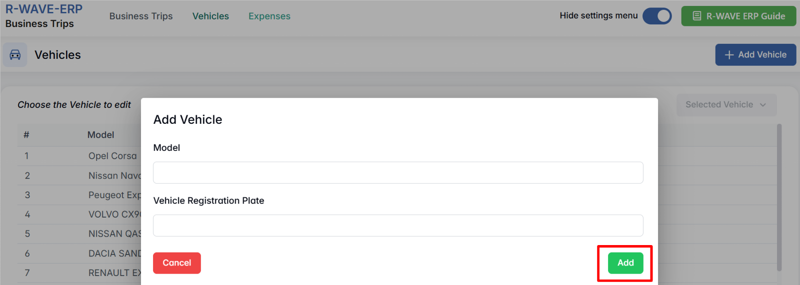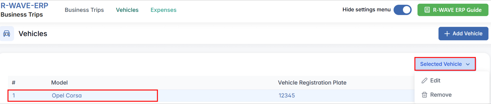 This ensures that only relevant and up-to-date vehicle information is available when planning business trips.