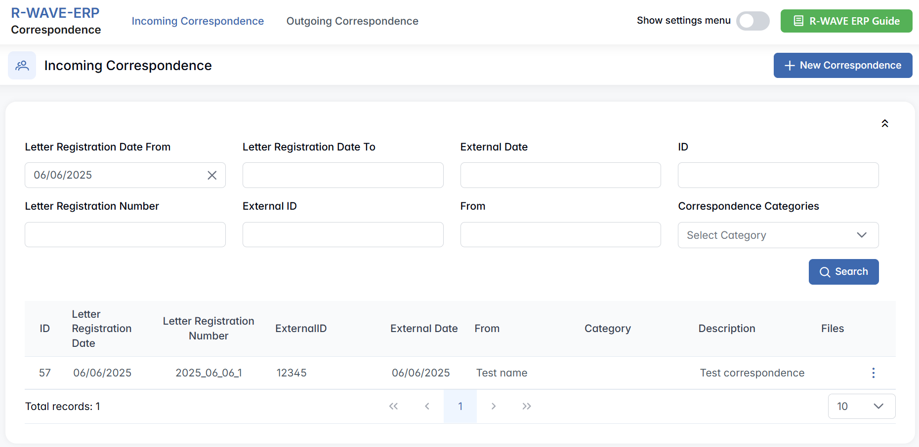 - Correspondence Categories – Filter by predefined correspondence types.