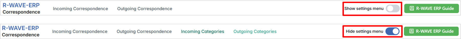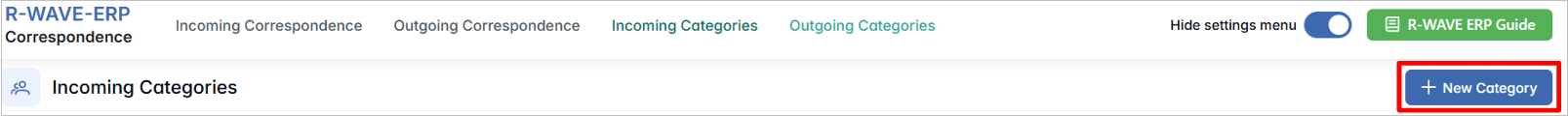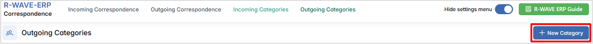 To support better organization and classification of official communication, R-Wave ERP allows you to configure custom Correspondence Categories. These categories help users classify incoming and outgoing letters more accurately during the registration process.