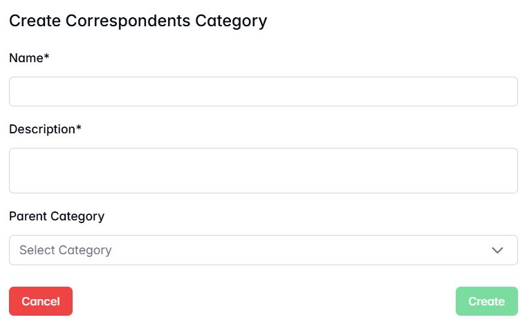 - A pop-up window titled Create Correspondents Category will appear.
