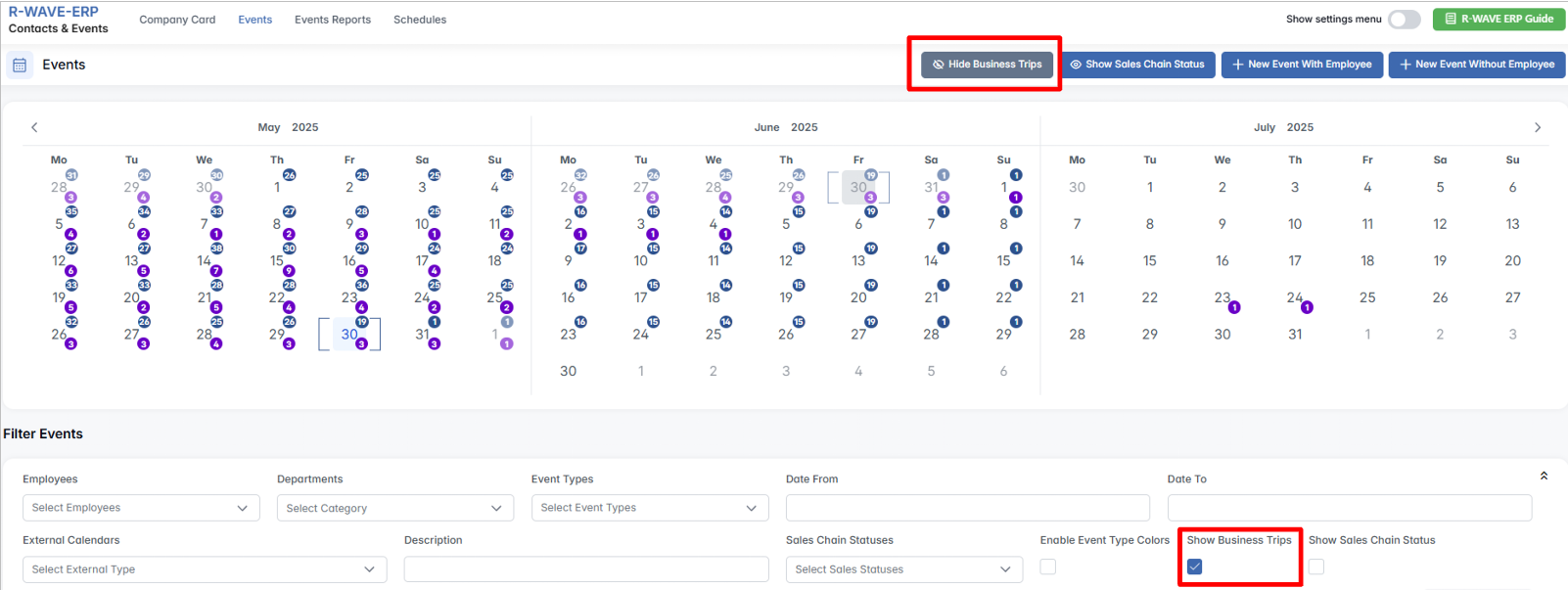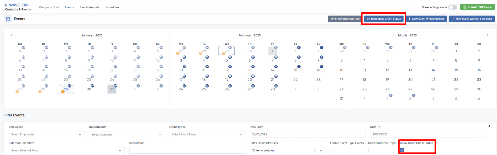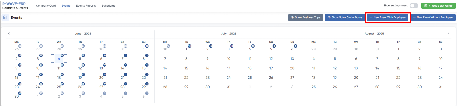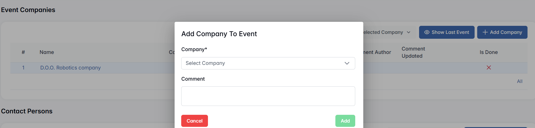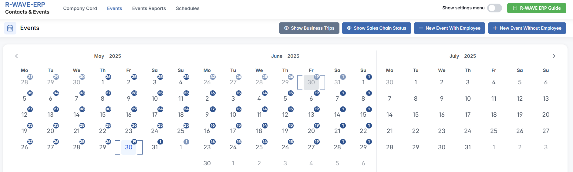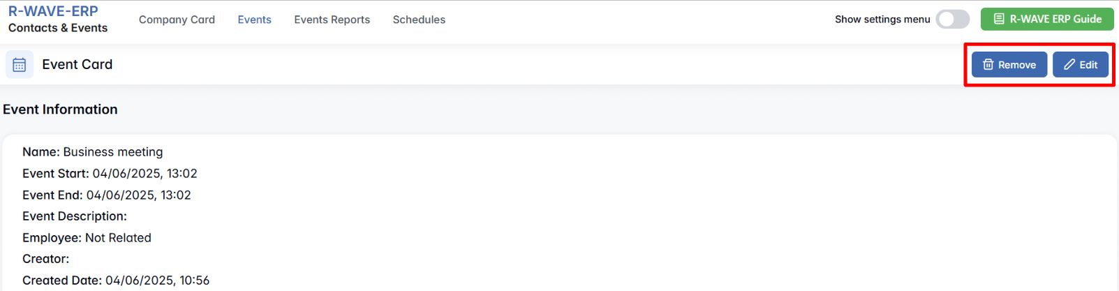 The Contacts and Events module in R-Wave ERP provides flexible tools for managing company profiles, associated contact persons, and related events.
