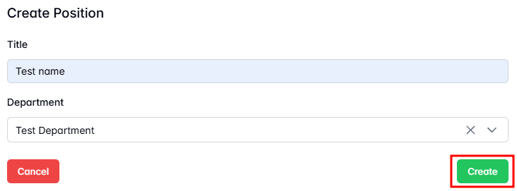 If you need to create a new department, it should be done via the Positions tab. A department is automatically created or assigned based on the position linked to the employee.