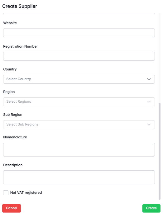 - Region and Sub Region - These fields are dependent on the selected country and will become active only after at least one country is selected.