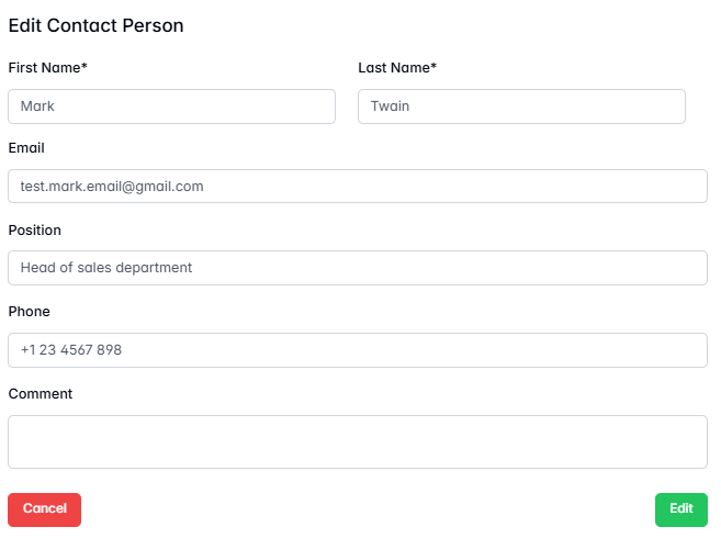 In each Company Card, you can manage the individuals who represent or communicate on behalf of that company. These are the people you contact for operations, sales, support, negotiations, and other business interactions.
