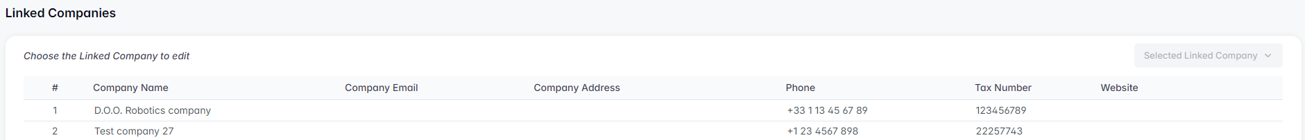 - Remove Company – Deletes the company from the system (permissions may apply).