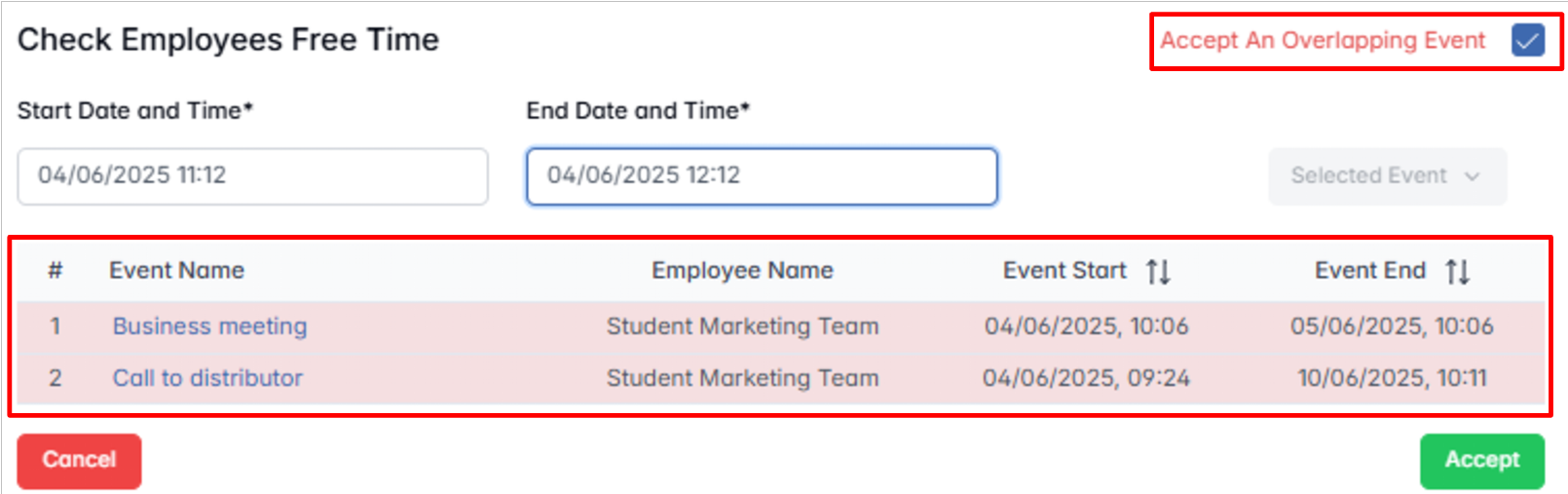 - Color – The color that will be used to display this calendar’s events in the ERP system for easy visual identification.