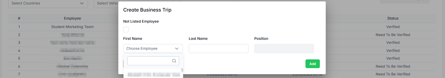 If you need a new position, create it in the Positions tab first — it will become available in the dropdown list when adding or editing an employee.