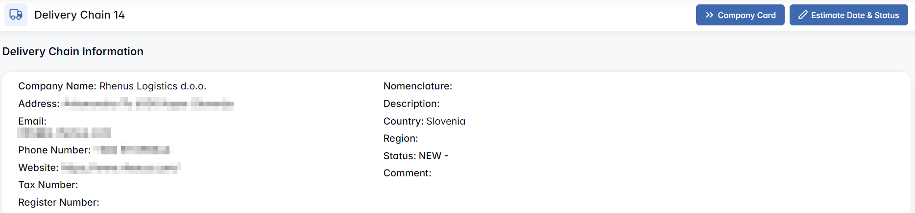 This information gives users a quick overview of the delivery context, including who the customer is, their location, and how to contact them. The status and comment fields provide insight into the progress and notes related to the delivery chain.