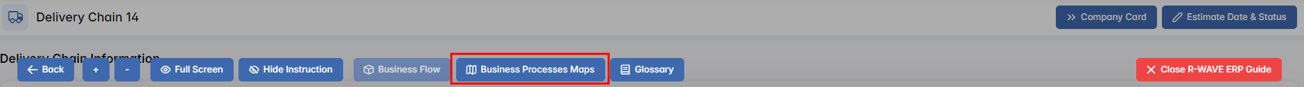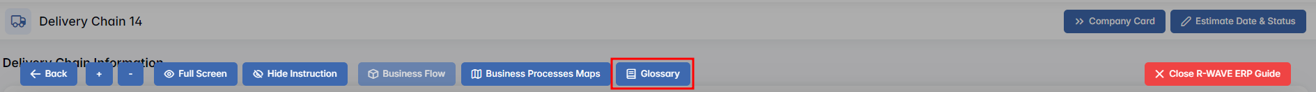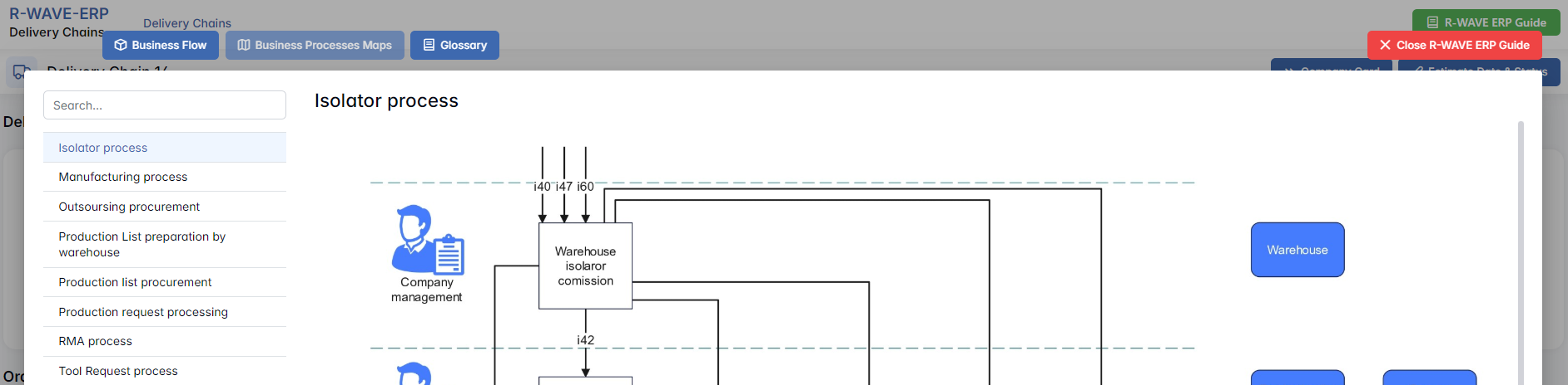 To support user navigation and clarity, R-Wave ERP includes a built-in contextual help system in the form of a pop-up guide window. This feature is available across different modules, including Delivery Chains, and is designed to help users understand where they are in the system and how to use the current section effectively.