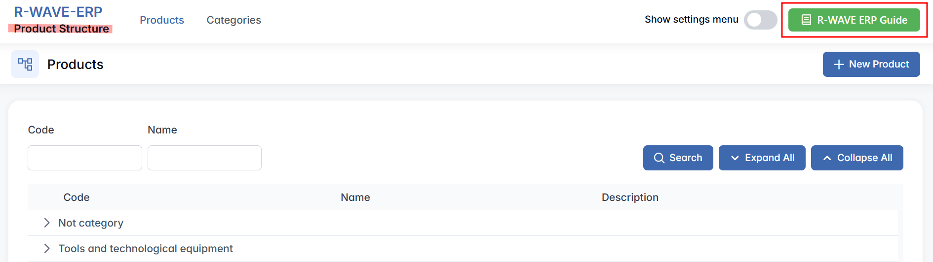 You can access the ERP Guide from any page by clicking the guide icon in the upper-right corner of the screen or by using the guide button located at the bottom of the main menu on the left-hand side.