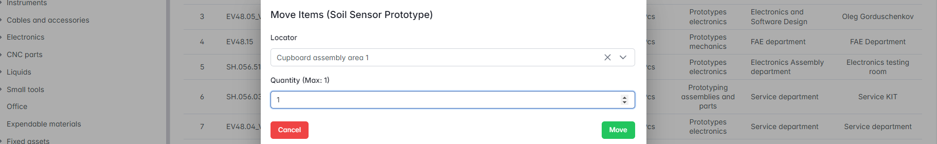 - Move – Transfers a tool from one locator to another within the same area or to a new one.