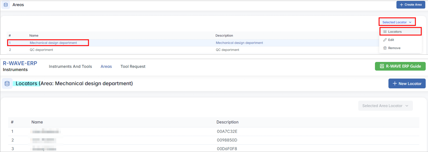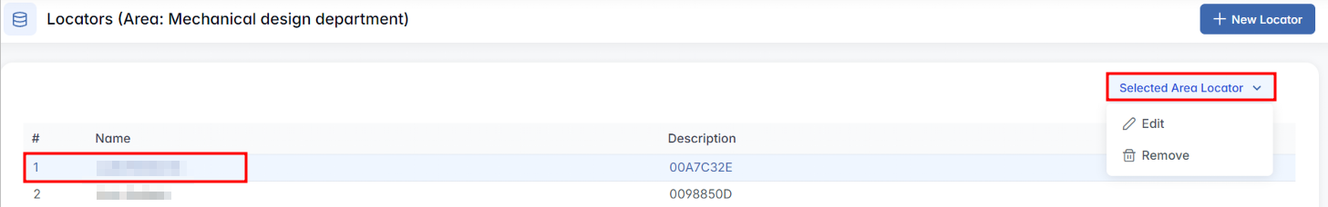 Locators – Opens a detailed page with Locators assigned to the selected Area.