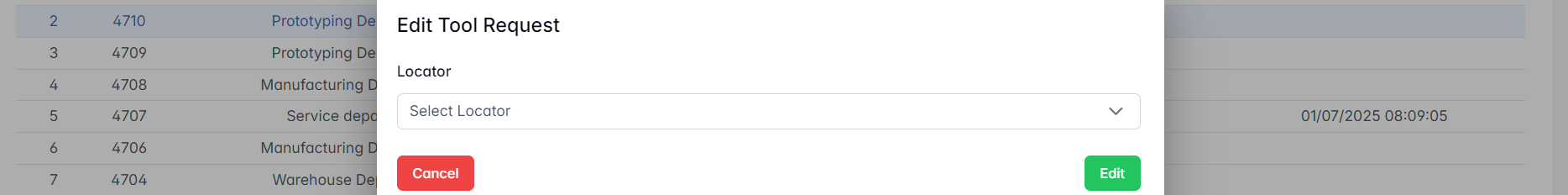 - Edit – Allows changing the Locator (e.g., if tools are needed elsewhere).