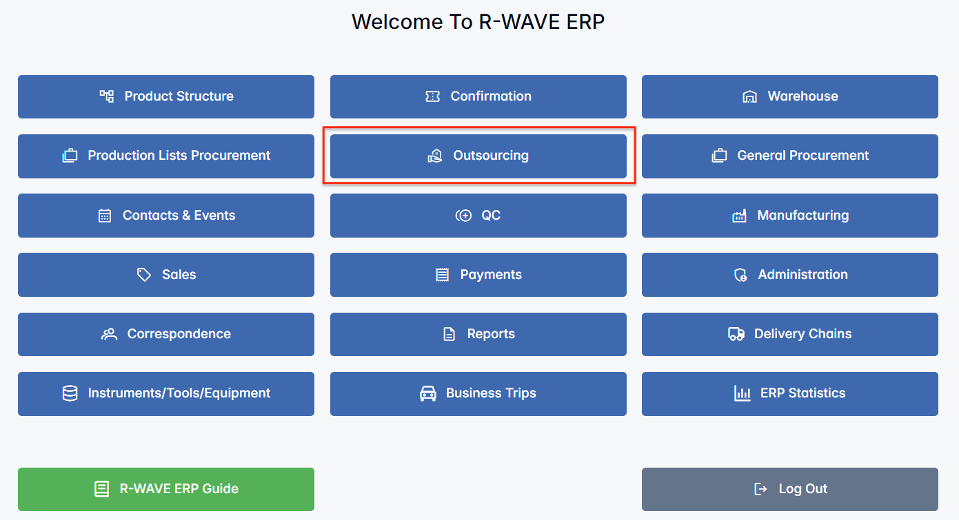 The Outsourcing module in R-Wave ERP enables companies to efficiently manage subcontracted manufacturing and assembly operations. Whether driven by automated requests from the production plan or manual inputs by employees, this module supports the full outsourcing lifecycle — from initial request to delivery and payment.