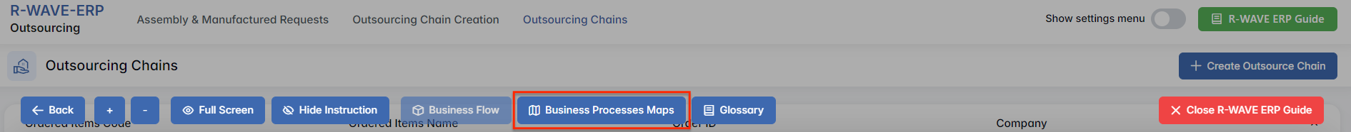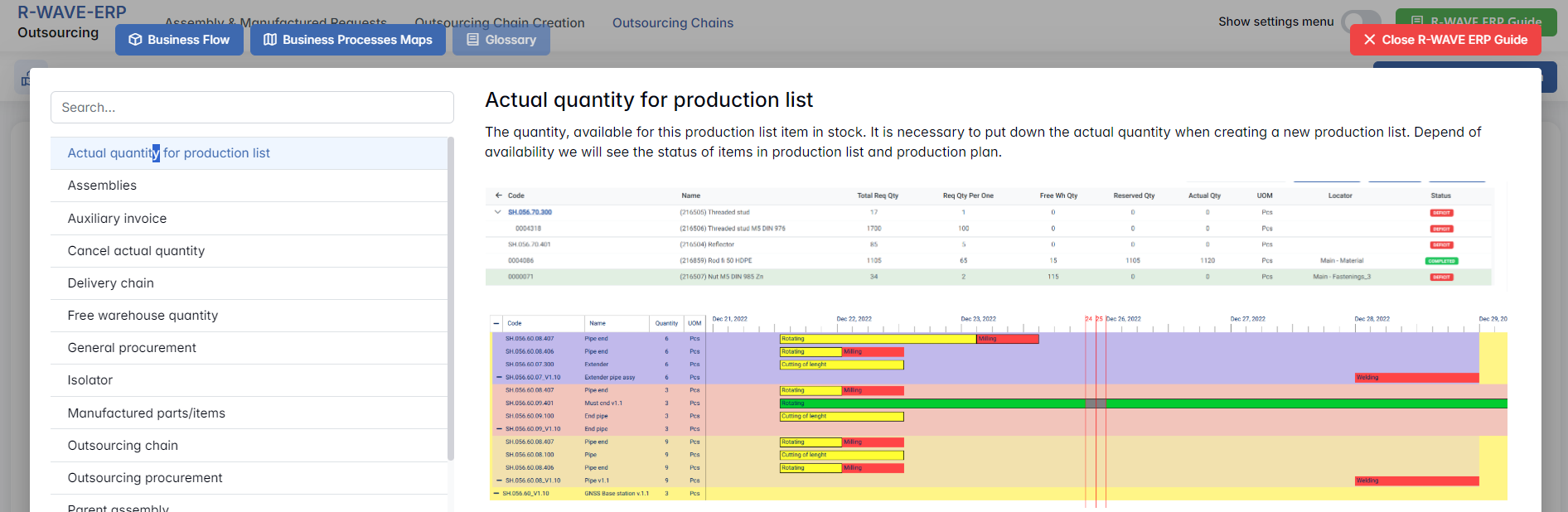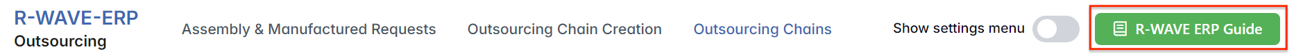 To support user navigation and clarity, R-Wave ERP includes a built-in contextual help system in the form of a pop-up guide window. This feature is available across different modules, including Outsourcing, and is designed to help users understand where they are in the system and how to use the current section effectively.