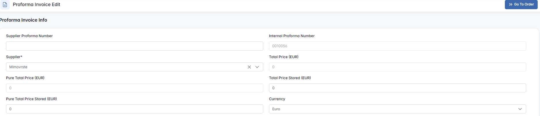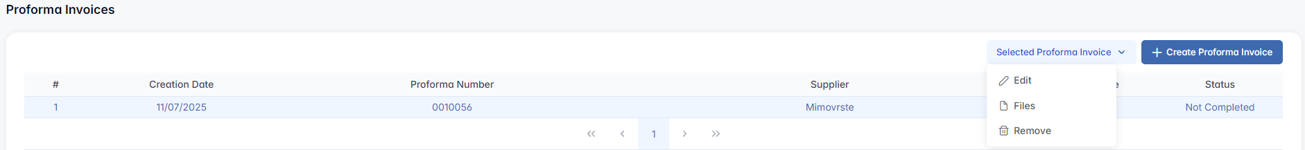 - A proforma number, supplier, and date must be filled in