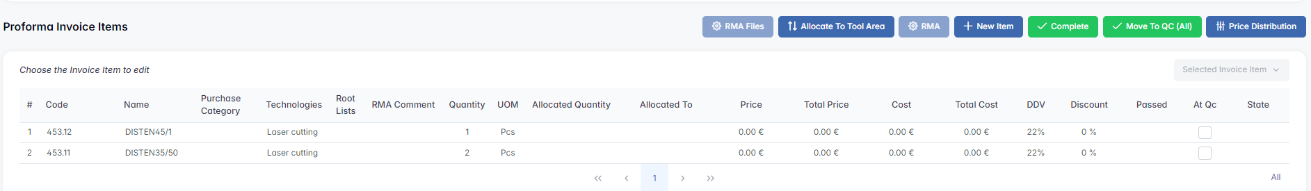 - Once completed, the proforma is routed to Quality Control