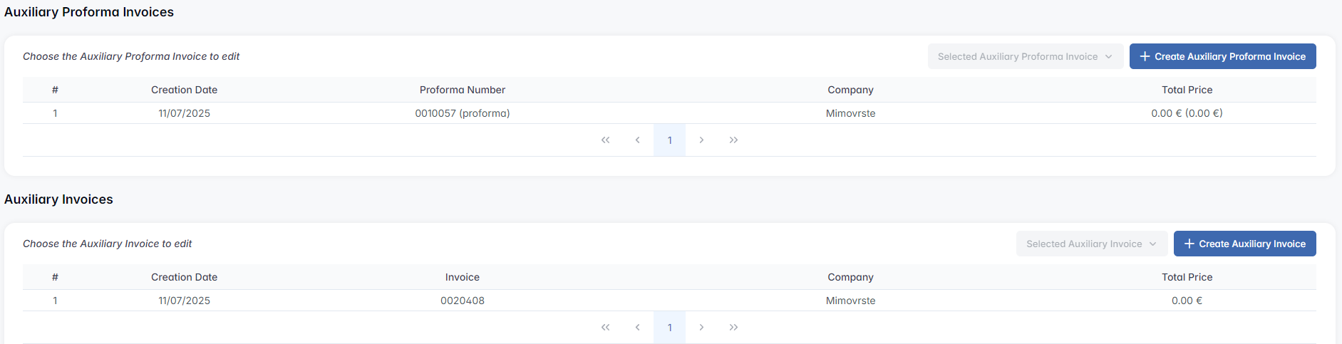 Auxiliary Proforma Invoices & Invoices