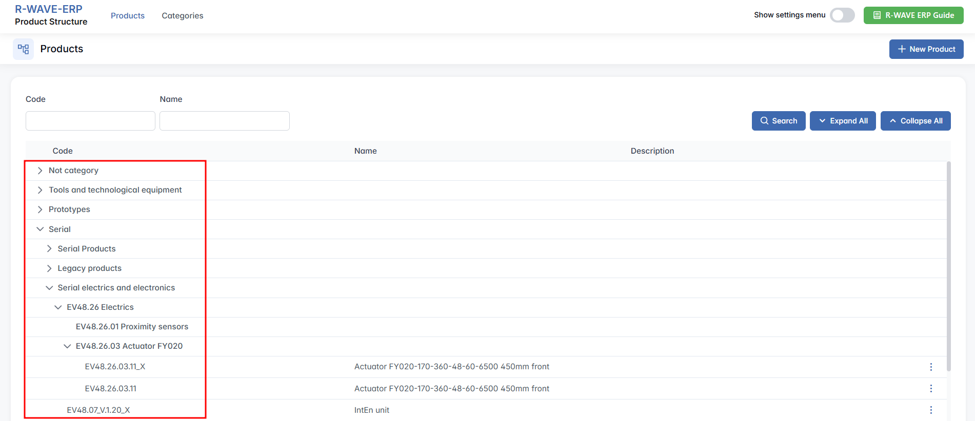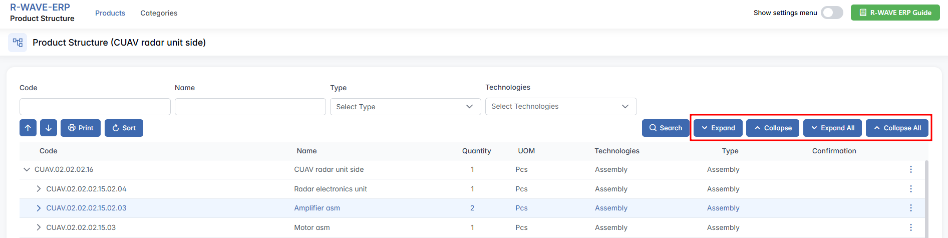 Expand All / Collapse All - use these buttons to show or hide the full products hierarchy in one click.