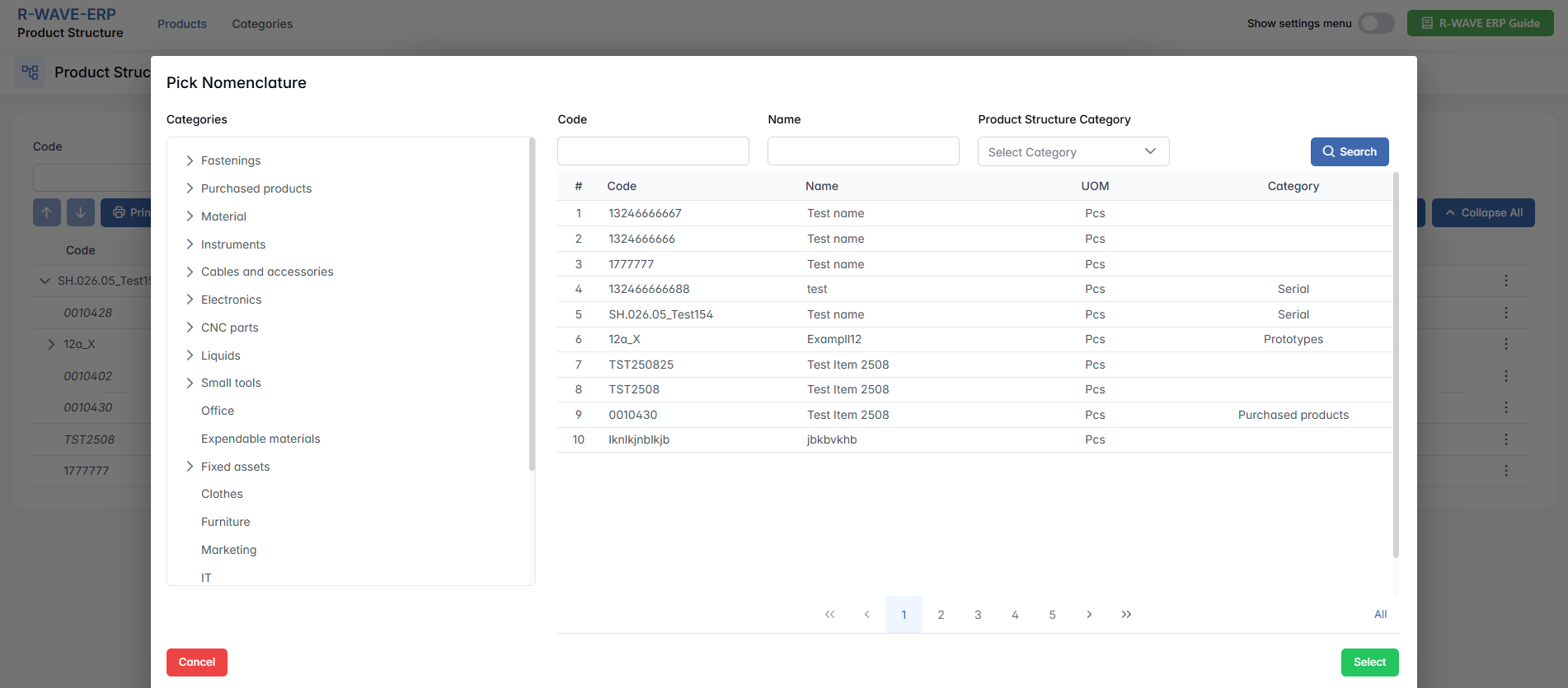 By using these tools, R-Wave ERP supports both manual and automated structure management, ensuring data accuracy, flexibility, and traceability across the product lifecycle.