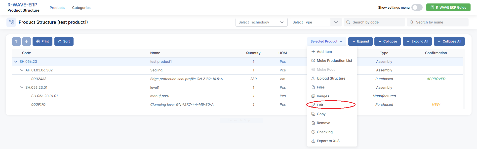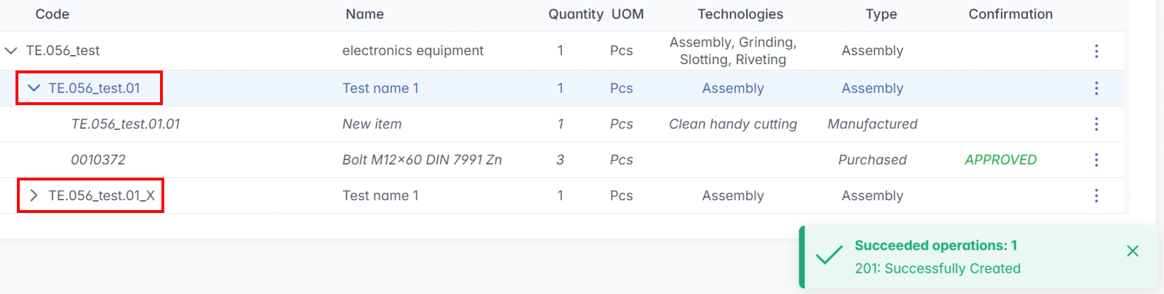 Allows you to duplicate the entire product structure, including its existing components and their relationships. This is especially helpful when creating a similar product with only minor adjustments. - Edit