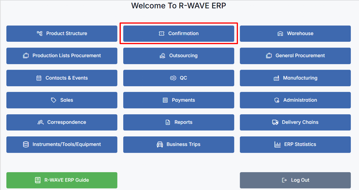 - R-Wave ERP Guide - opens a built-in help window with contextual instructions and business flow diagrams.