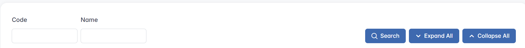 Use the Code and Name filter fields at the top of the page to search for a specific product. Once located, find it in the hierarchy table below. - Open the Action Menu