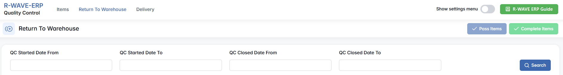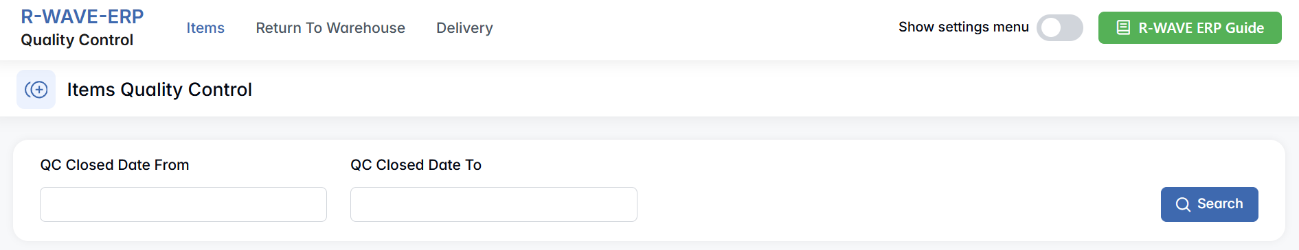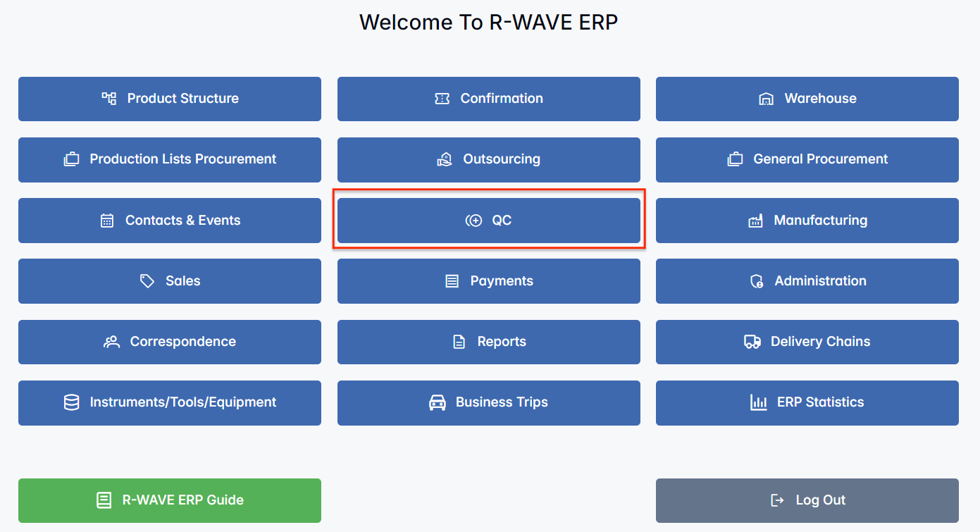 The Quality Control module in R-Wave ERP is designed to handle quality inspection procedures for all incoming items — both from external procurement (via invoices) and from the company’s own production orders. This module ensures that no items enter the warehouse or proceed to the next step in the workflow without first passing a validation check. It provides an organized, transparent process for confirming what passes, what fails, and where each item should be stored afterward.