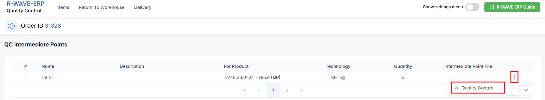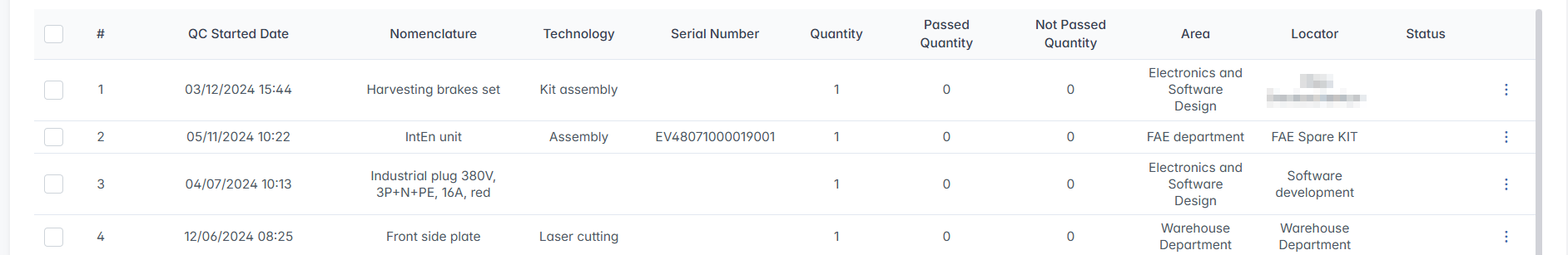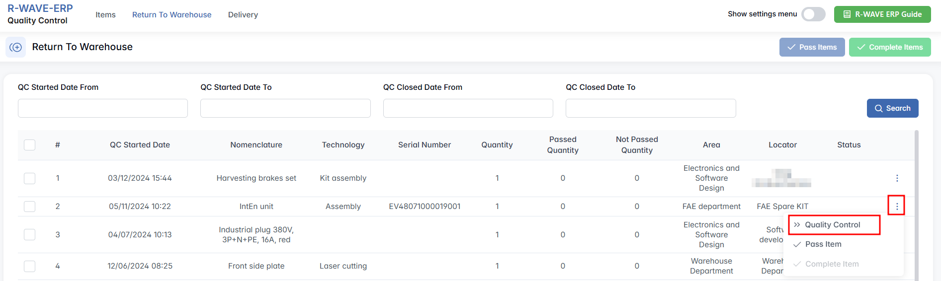 However, if you wish to perform full quality control — especially for items that are critical or show signs of use — select a single row, click three-dot menu next to it and press Quality Control.
