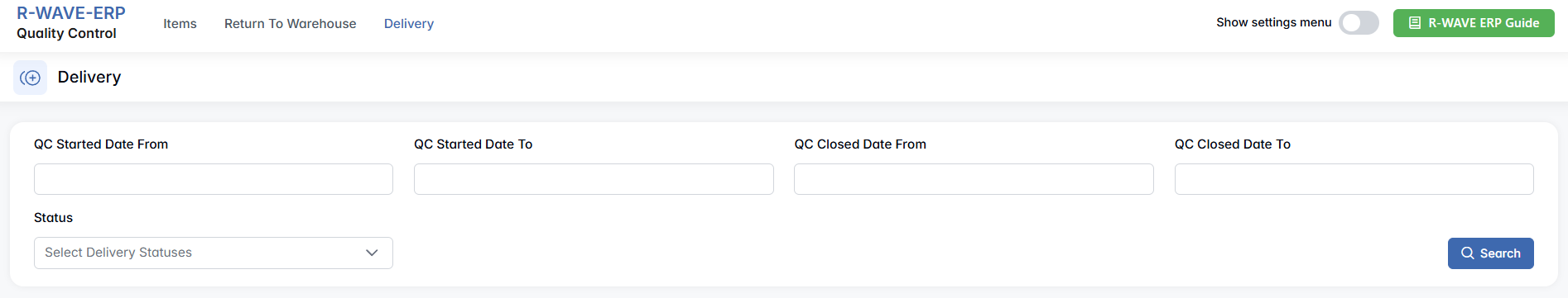 - QC Started Date From / To — to filter deliveries by the date the QC process started,