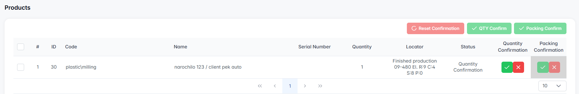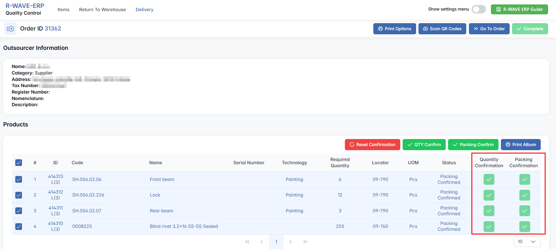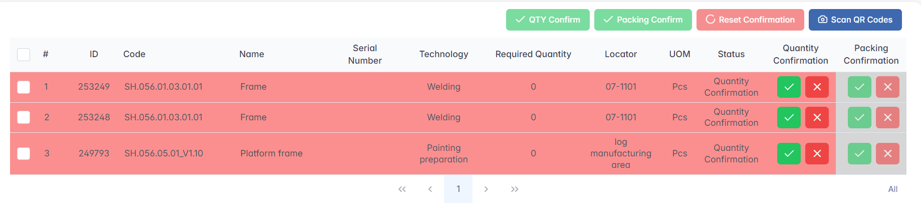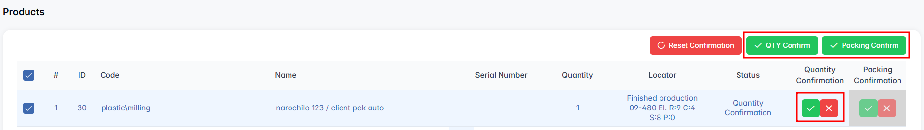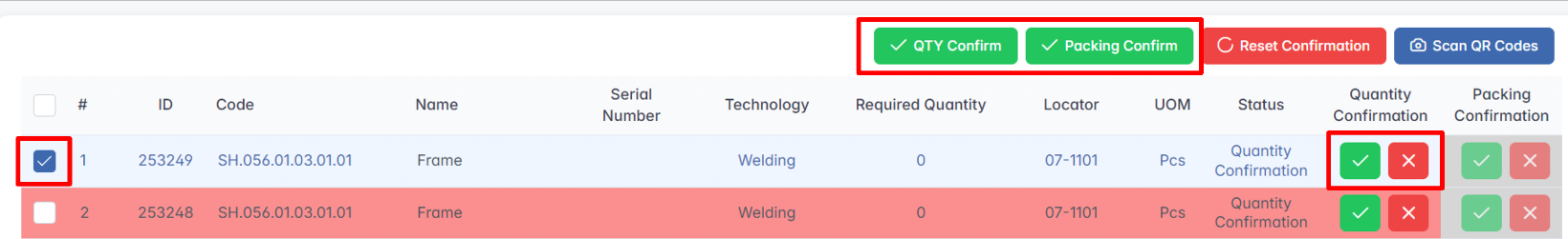 - Quantity Confirmation and Packing Confirmation — where both confirmations must be completed before proceeding.