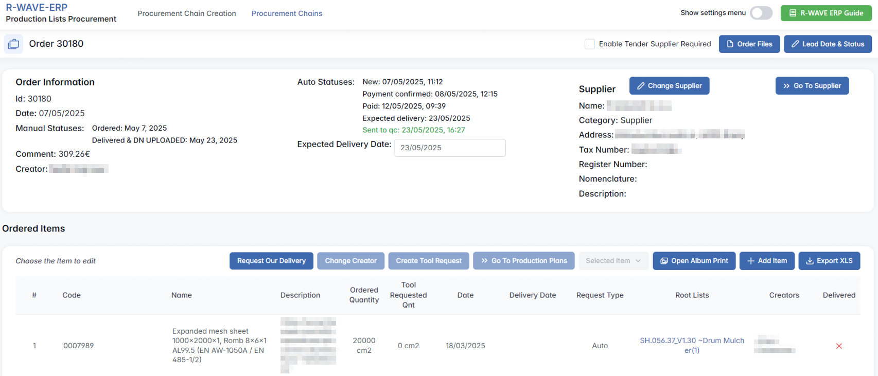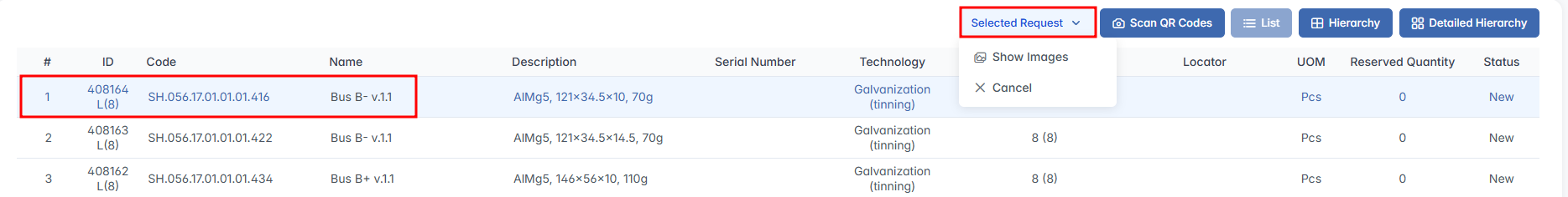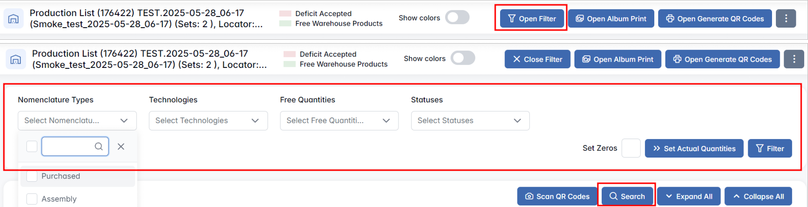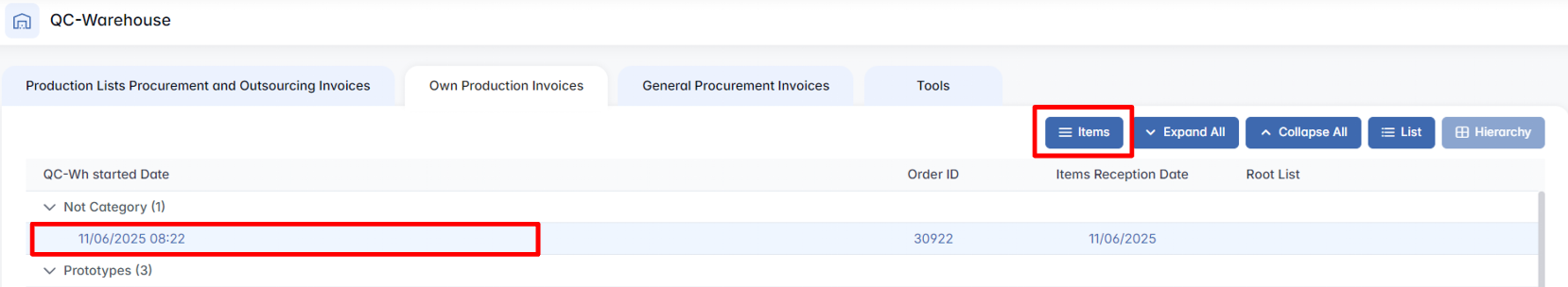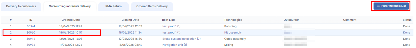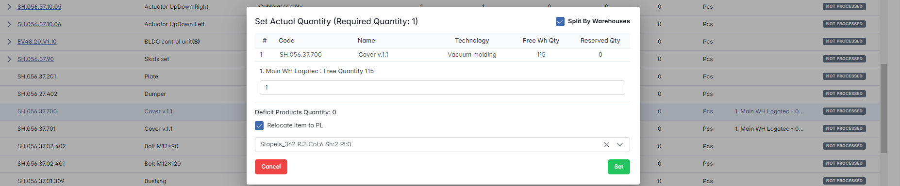 - Production List - represents an assembly sent to production, for which item availability is checked, missing items are ordered, and available stock is reserved and collected at a single location.
