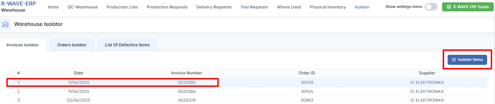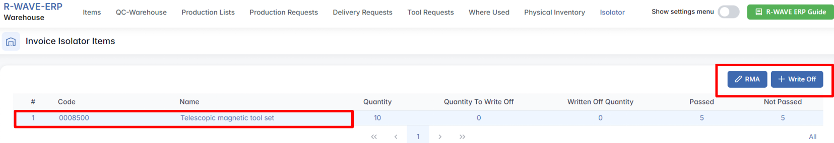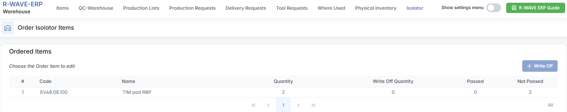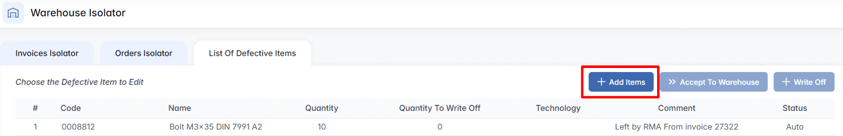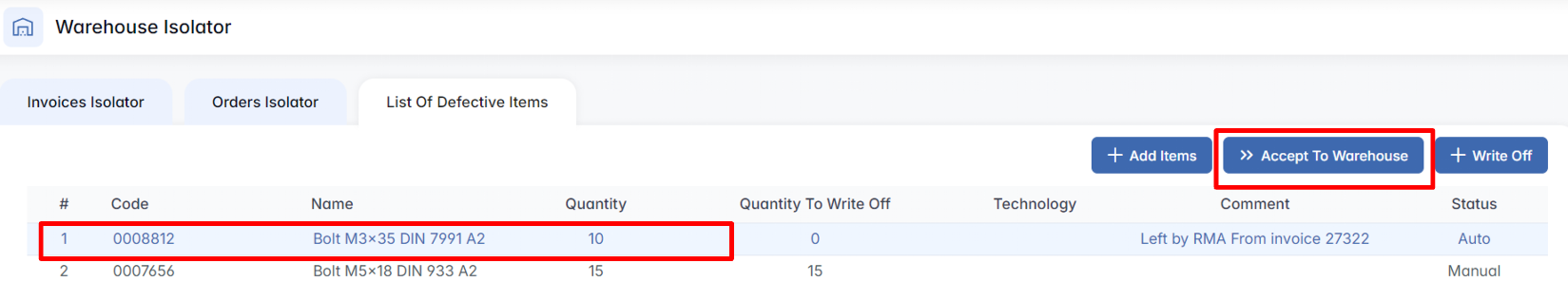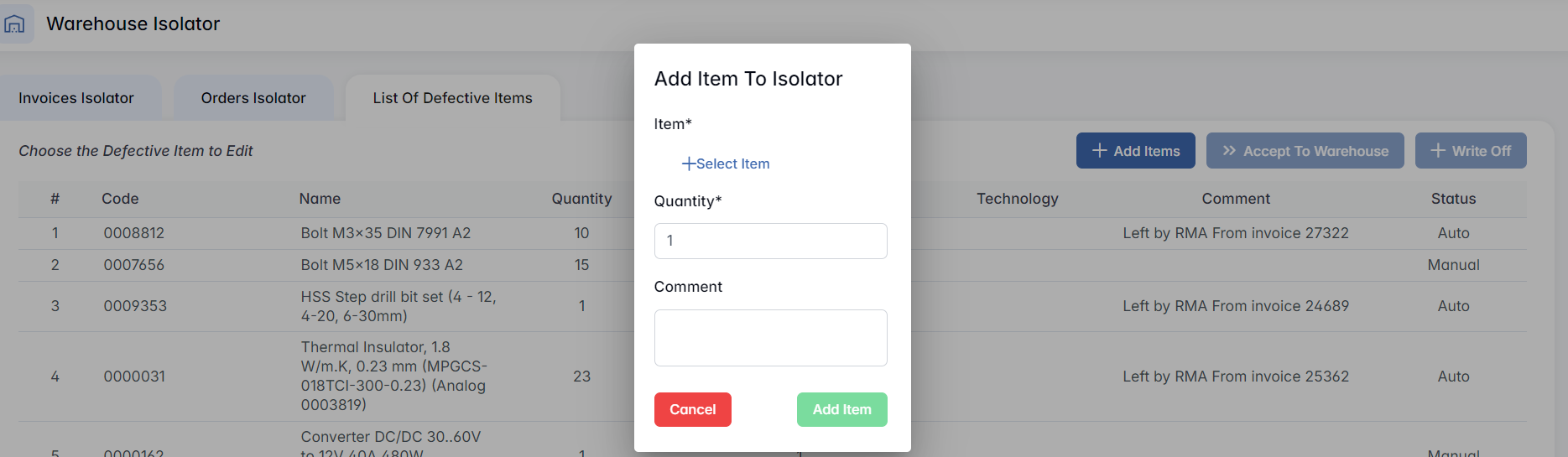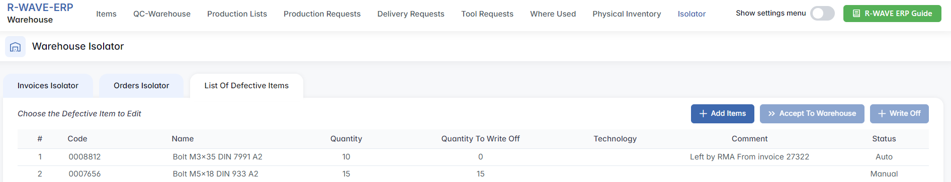 - Isolator - manages items that failed quality control and are either under reclamation or marked for write-off.