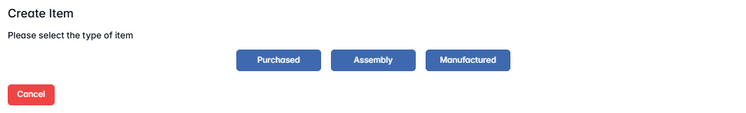 - Type - Choose between Purchased, Assembly, or Manufactured items.