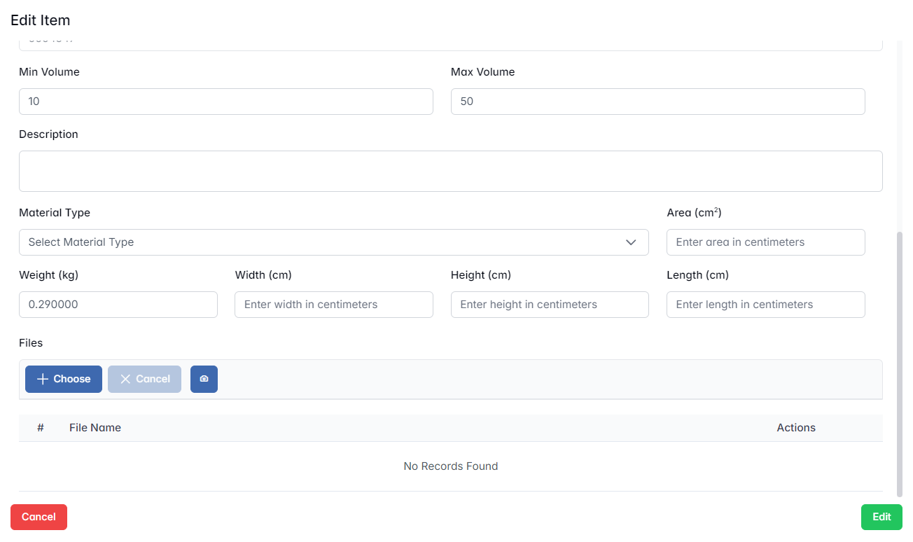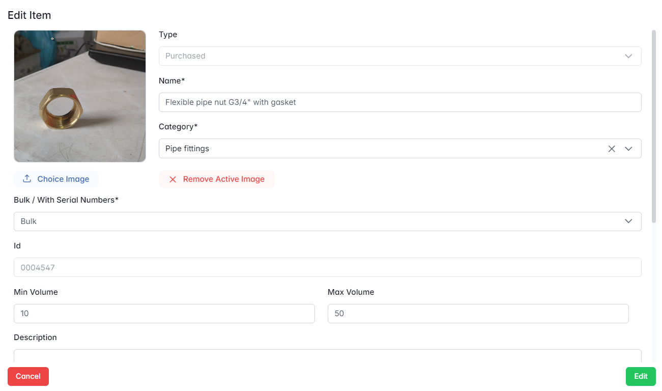 | Image | Upload or view a reference image for the item. You can also remove the current image if needed. |