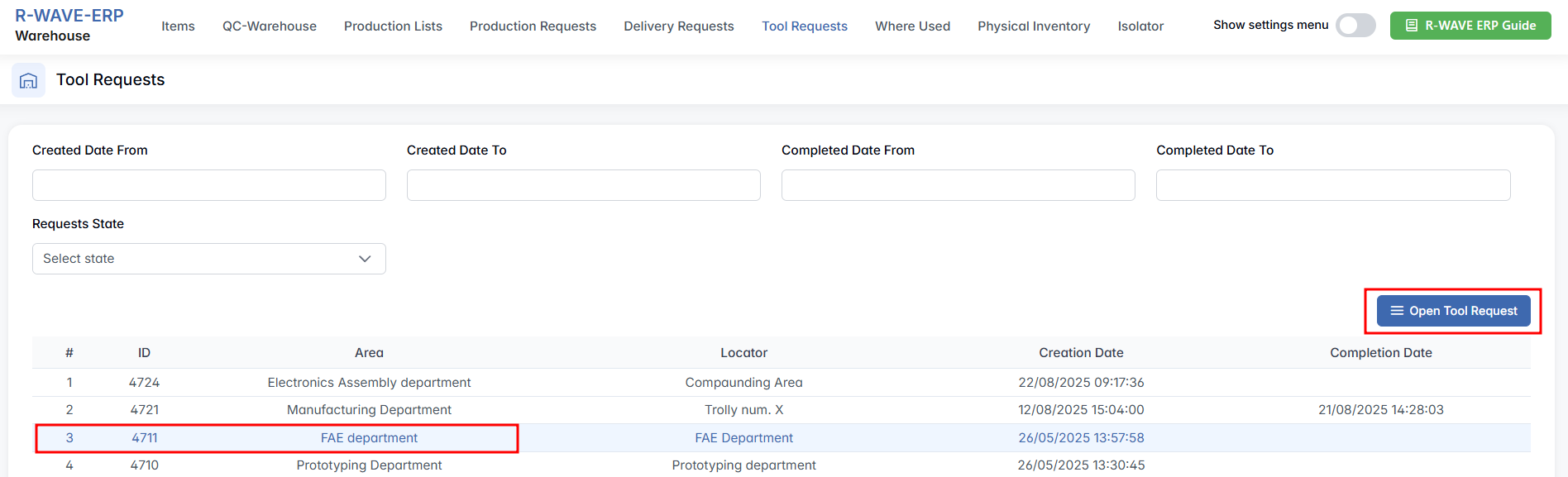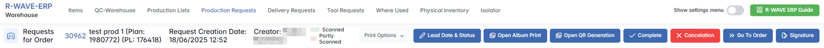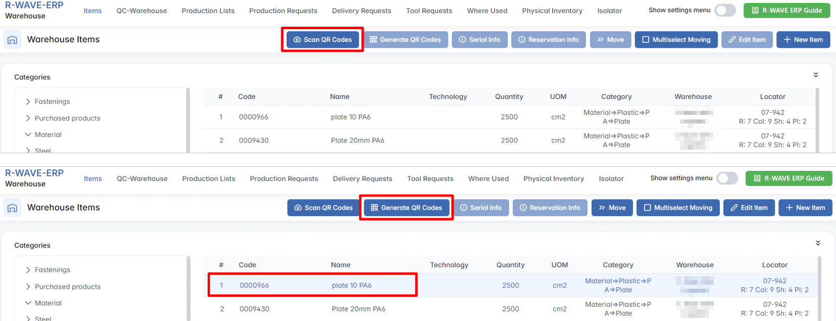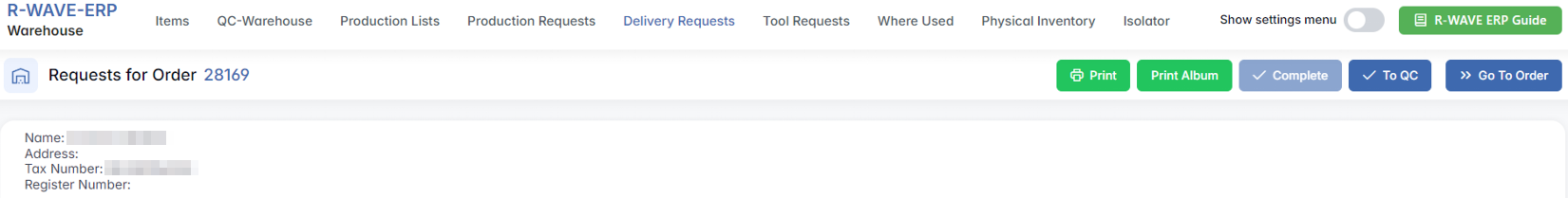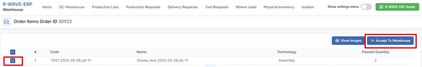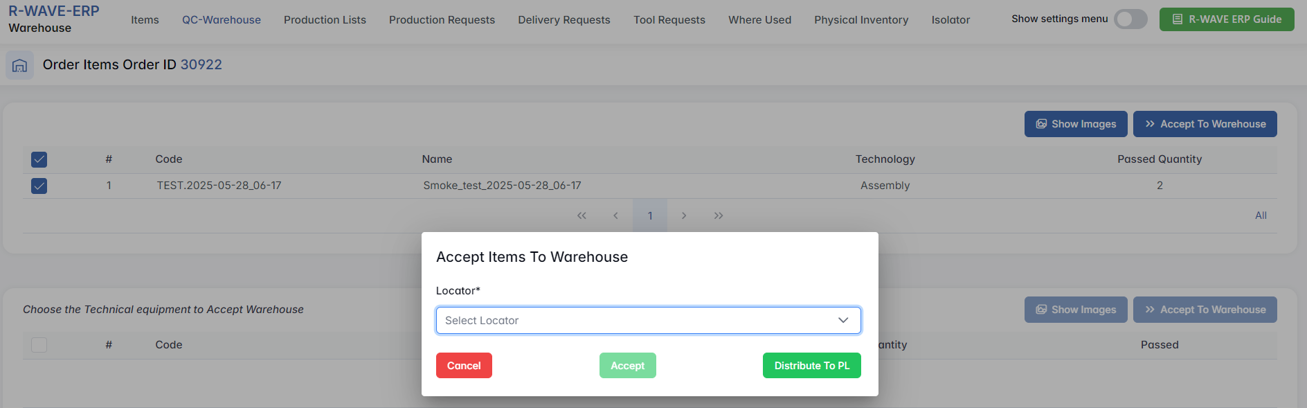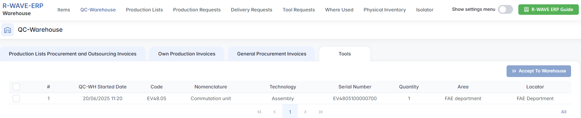 The Warehouse module in the R-Wave ERP system is designed for managing and organizing all items stored in the warehouse. It provides structured access to all item-related operations - from tracking stock and monitoring availability to preparing materials for production and handling warehouse workflows.