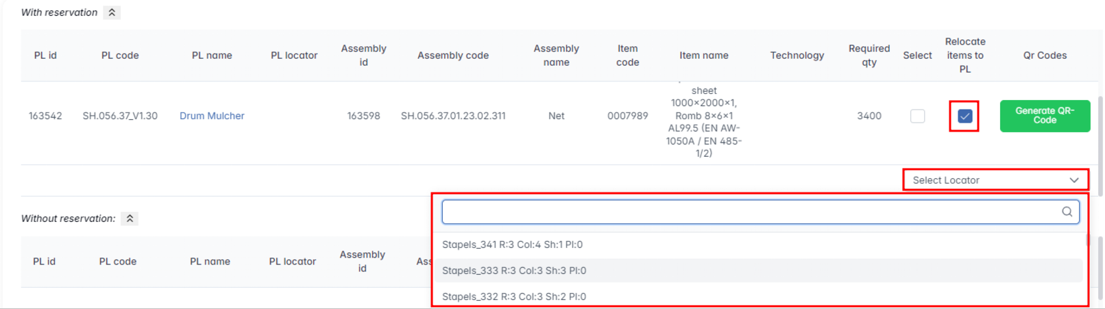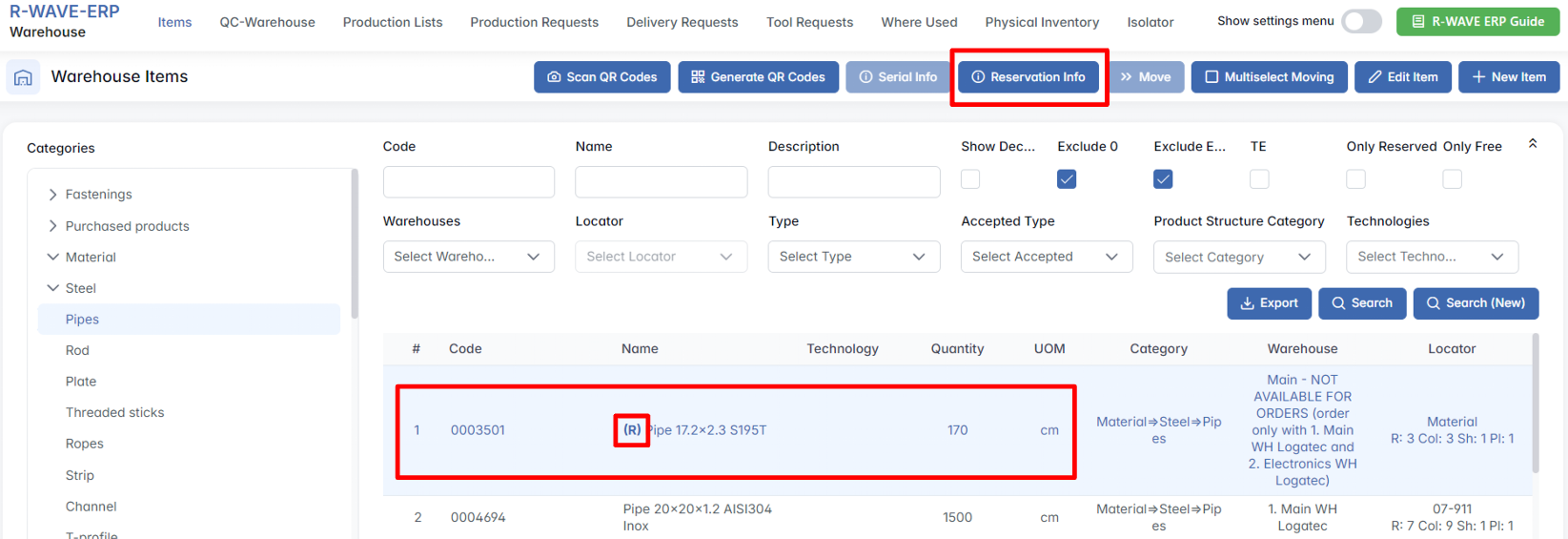 - If the name of an item is preceded by (R), it means that it is reserved for a particular production list. To view for which production list the item is reserved, click on it and use the Reservation Info option.