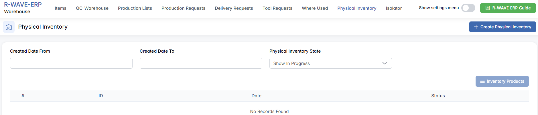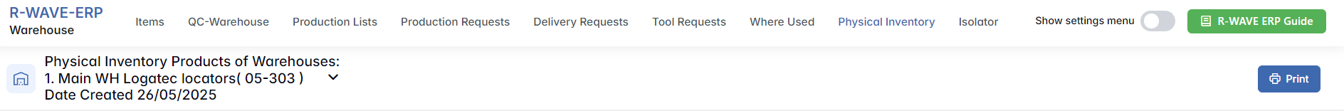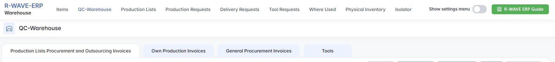 The Warehouse module in R-Wave ERP provides a centralized workspace for managing all warehouse-related operations. It helps ensure that materials and components are properly received, stored, tracked, and prepared for production or delivery.