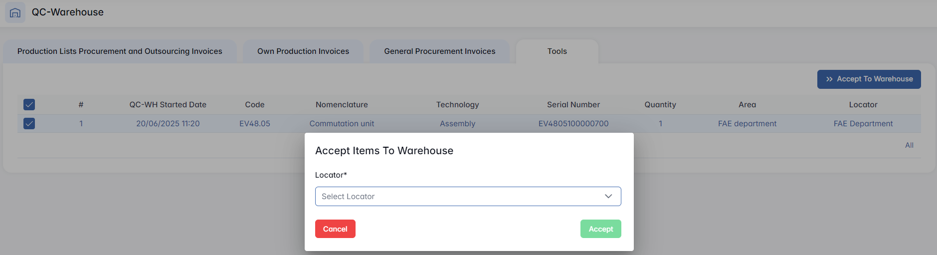 - QC - Warehouse - used for receiving and distributing goods that have passed quality control.