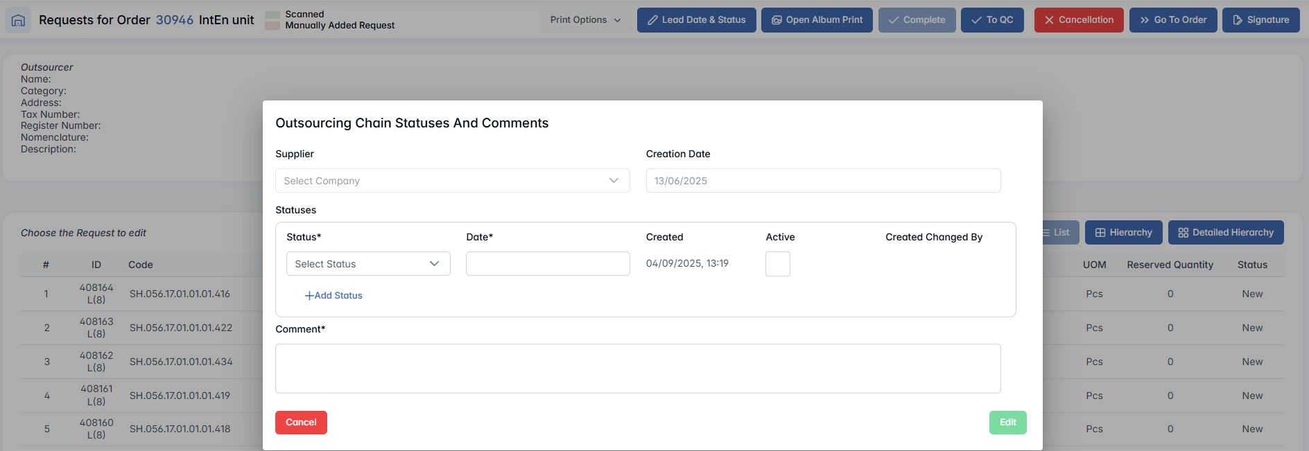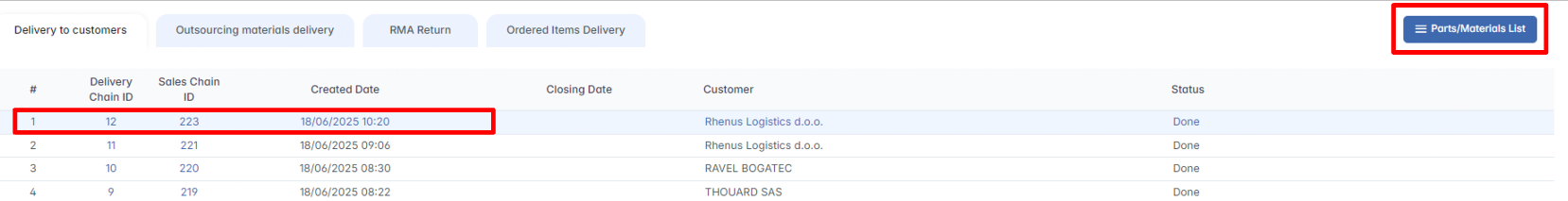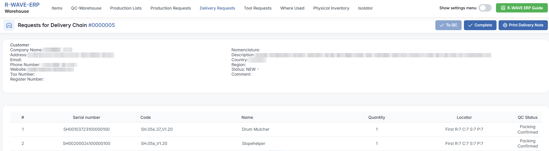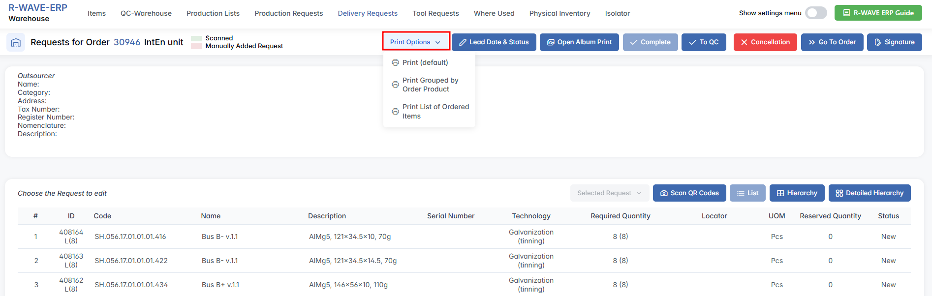 - Delivery Requests - manages shipments of goods to customers or outsourcing partners.