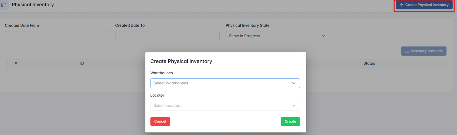 - Warehouse / Locator - Use these dropdowns to select the specific warehouse and its internal locator (shelf or zone) to narrow the results.